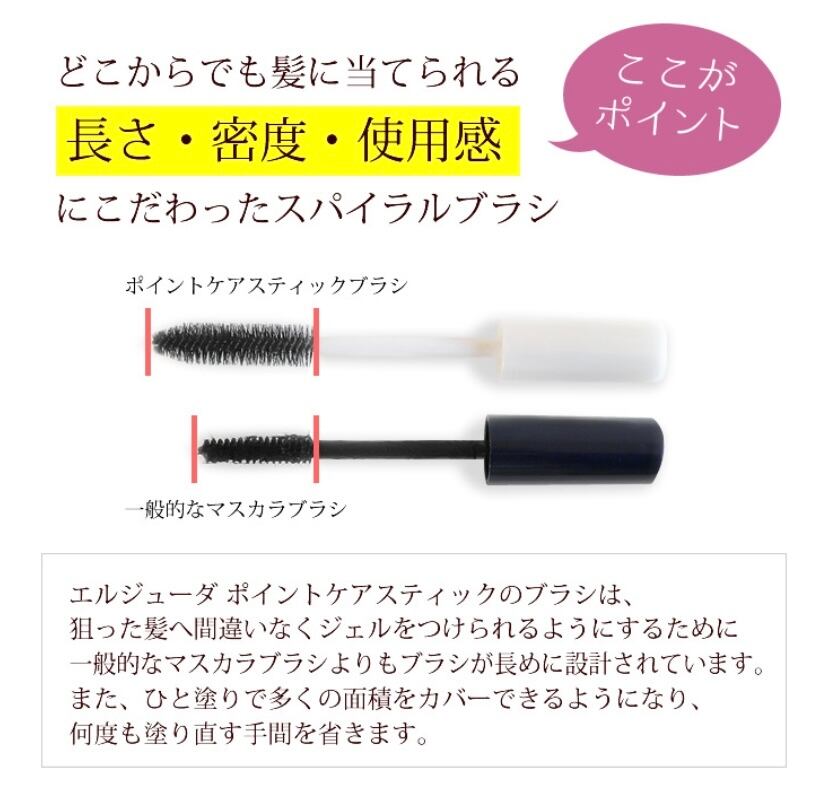 マスカラタイプで手を汚さずに使え、メイクポーチに入れて持ち運べるサイズです。
